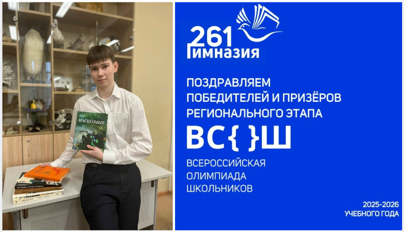 В 2025/2026 учебном году по результатам регионального этапа Всероссийской олимпиады школьников по истории Новожилов Ярослав, ученик 11А класса, стал ПРИЗЁРОМ! Коллектив гимназии поздравляет Ярослава с отличным результатом! Благодарим Воронцова Владимира Викторовича, учителя истории, за подготовку к ВcОШ. Ярослав отмечает: «Благодаря усердной подготовке в этом учебном году мне удалось стать призёром регионального этапа Всероссийской Олимпиады школьников …