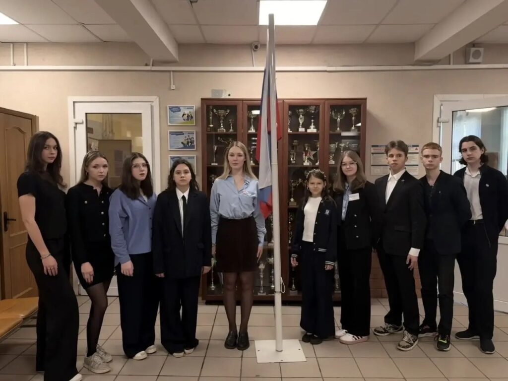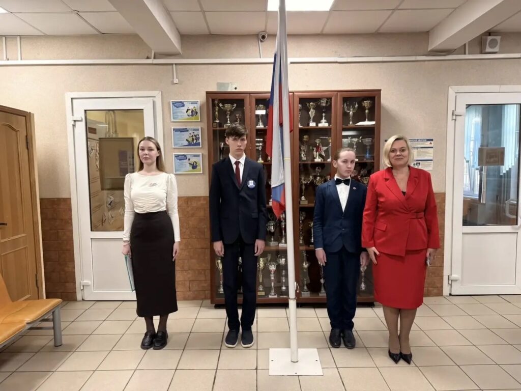 Учебная неделя в Гимназии началась с торжественного поднятия флага Российской Федерации. Почётное право поднять государственный флаг Российской Федерации было предоставлено лучшим ученикам гимназии. Флаг поднимали: На торжественной церемонии в начальной школе присутствовали учащиеся 2В и 2Г классов. Флаг поднимали: Во всех классах гимназии прошли “Разговоры о Важном” на тему: «65 лет триумфа. 80 лет космической …